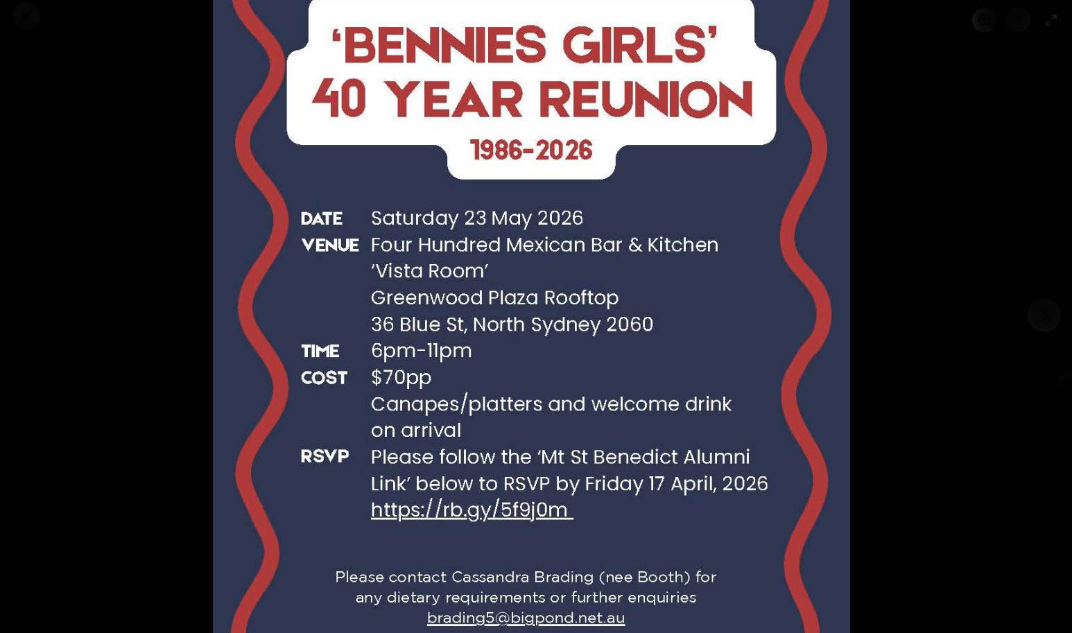 | Mother's Day Community Breakfast | Wednesday 6 May 7.30 - 8.30am |