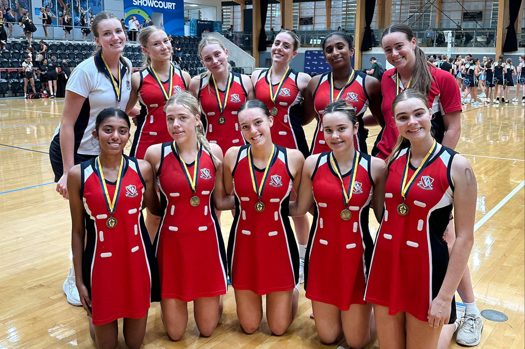 U18s - The Under 18s Representative Netball team delivered an outstanding performance at the CGSSSSA Netball Championships, finishing the day as undefeated champions. After moving confidently through their early matches, the team faced two tough opponents in Brigidine and Monte. Both games were tightly contested, but our players showed exceptional composure, teamwork, and determination to secure hard fought wins. Their efforts earned them the gold medal and a well deserved place at the top of the competition. A special thank you to Marley D for her invaluable support in coaching and managing the team throughout the tournament. Congratulations to: Ruby P, Eliza O, Prianka J, Sienna C, Siena P, Sophia B, Sarah H, Cate G, and Nehara D. Coach: Miss Kelleway.